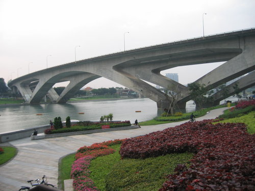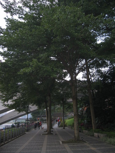 一路沿著河濱步道往碧潭吊橋方向走,偶爾還有自行車從旁插身而過。目前大台北的河流兩岸好像都已規劃成為親水休閒娛樂區,並投置了自行車專用車道,聽說還可從新店溪沿岸直達淡水八里。