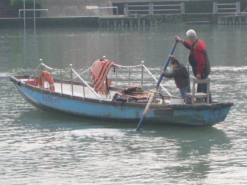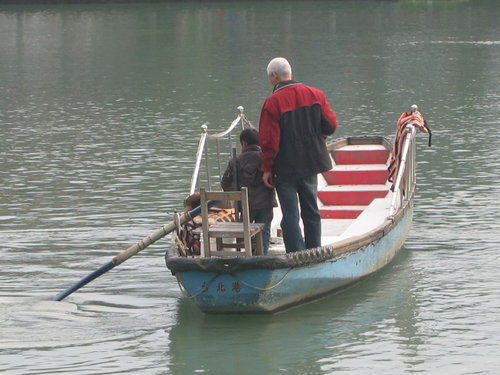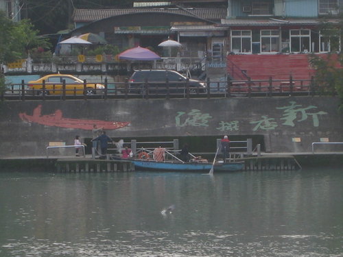 吃完了臭豆腐,一時興起,決定搭渡船回對岸。聽擺渡老伯說,新店擺渡已是北部最後一個渡船口了。上了岸,回首望見擺渡老伯正在教導他隨行的孫子如何擺渡,又是一幅溫馨且具經驗傳承的畫面。