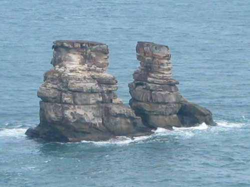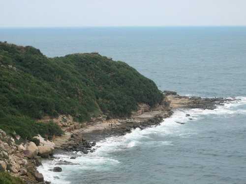 10月30日早上到市府轉運站搭乘國光客運到金山,約一個小時抵金山。第一站是金山的獅頭山公園,入口處蠻寬廣的,而且又乾淨。台灣現在全力發展觀光,連地方景點都整理的很乾淨,沿途少見垃圾。沿著步道走了約1公里左右,看到了有名的雙燭臺嶼挺拔地佇立在海中,旁邊突出的海岬處,嶙峋的海岸任憑海浪拍打著,景致剎是漂亮。經過一個以雙燭臺嶼為背景,名為「燭臺雙峙」的供人攝影的造形。