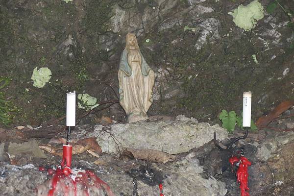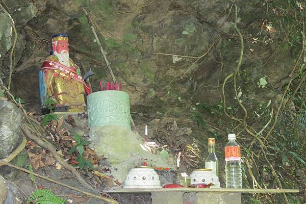 休息時看到一位獨自健行的老外,往山壁山的神明行禮,心裡不禁好奇老外竟也敬拜土地公。待他離開後,我驅前一看才恍然大悟,原來山壁有兩處神位,一供奉聖母瑪莉亞,一為土地公,他行禮的是聖母瑪莉亞。第一次看到山上供奉有西方宗教的神明,為不同信仰的旅人提供心靈寄託,除覺新奇外,同時為有心的善心人士致上敬意。