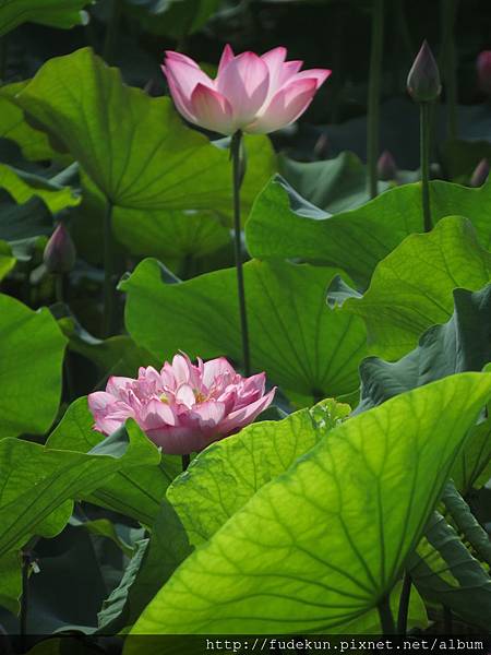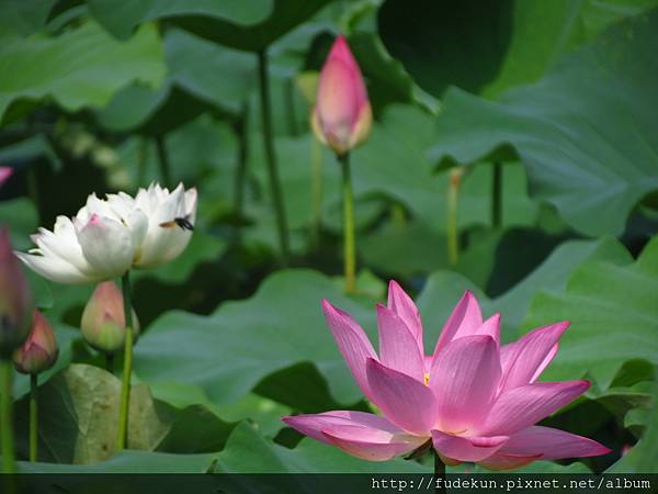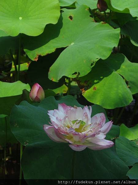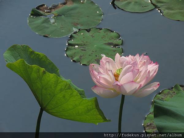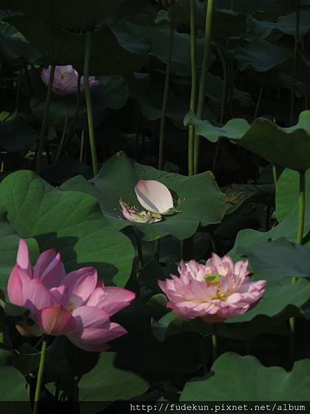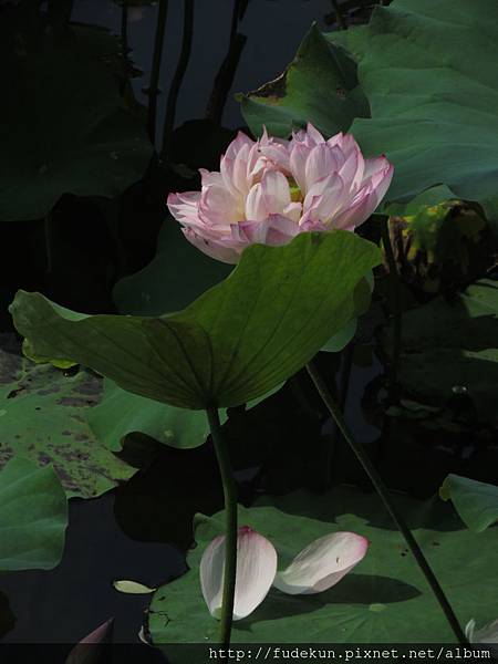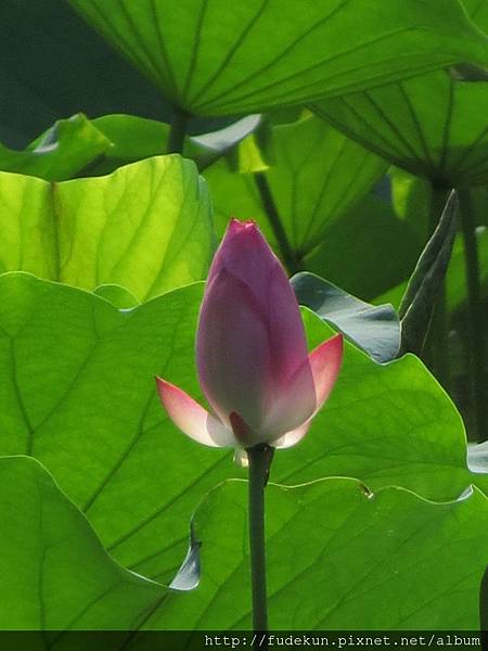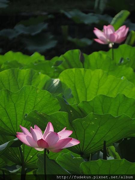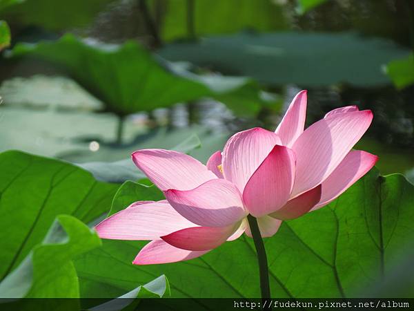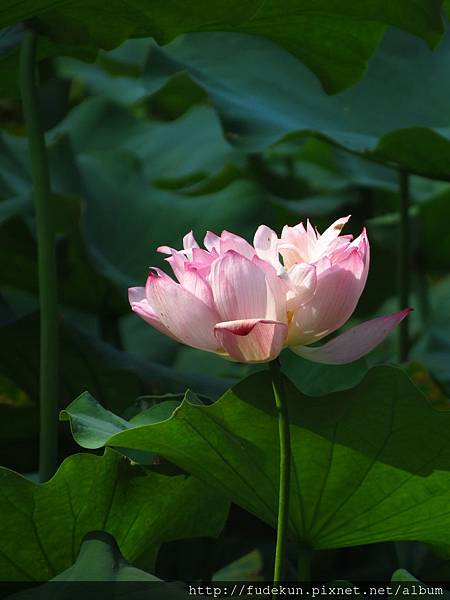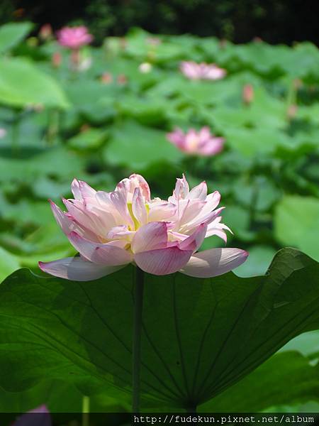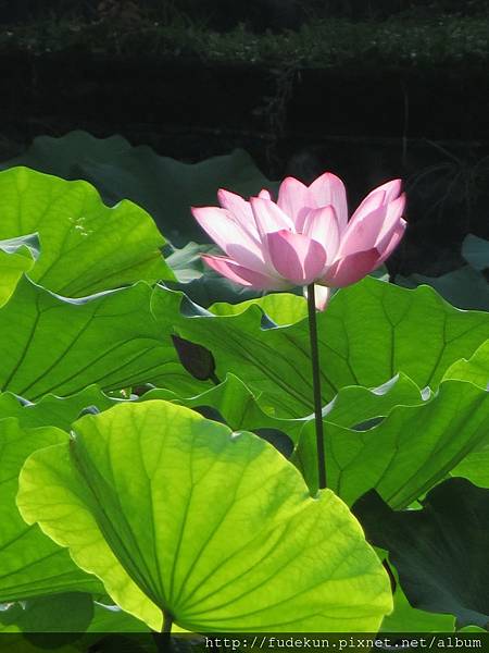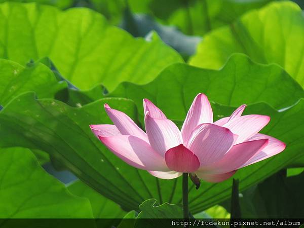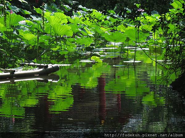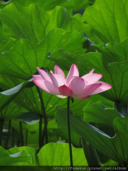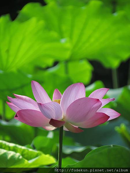 端陽,台北植物園,荷葉田田,孤莖挺花隨風搖曳。