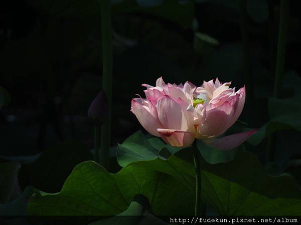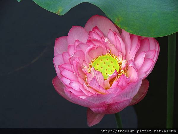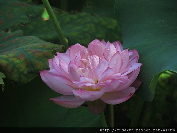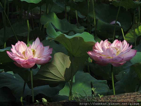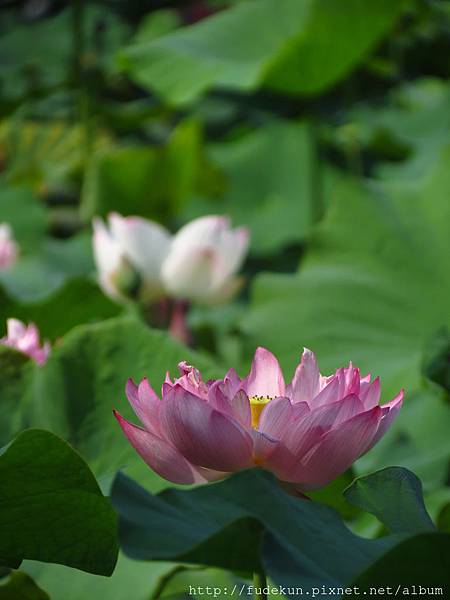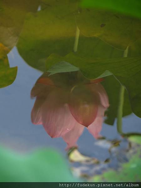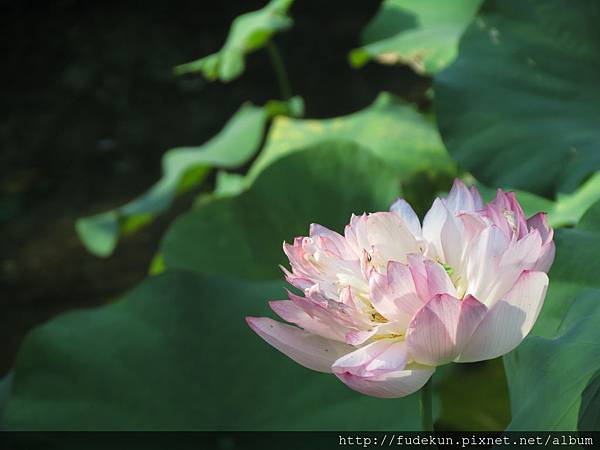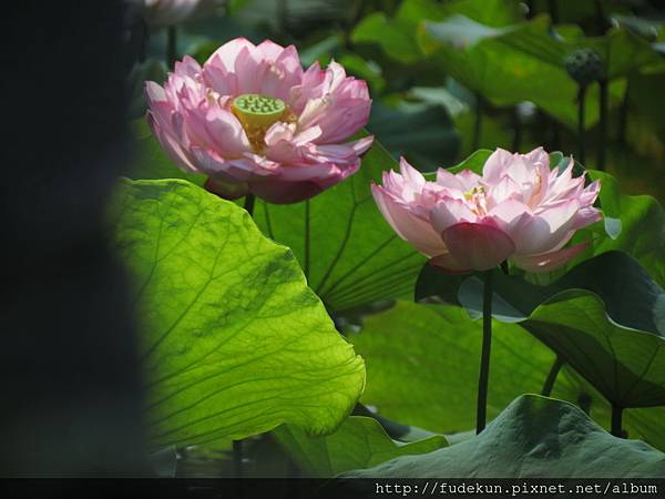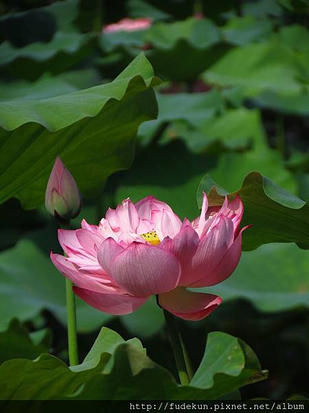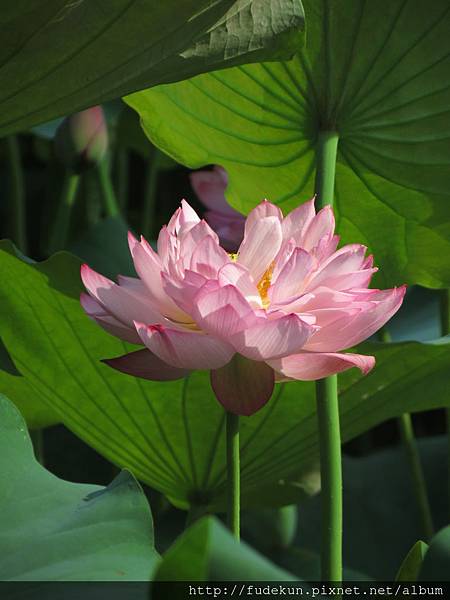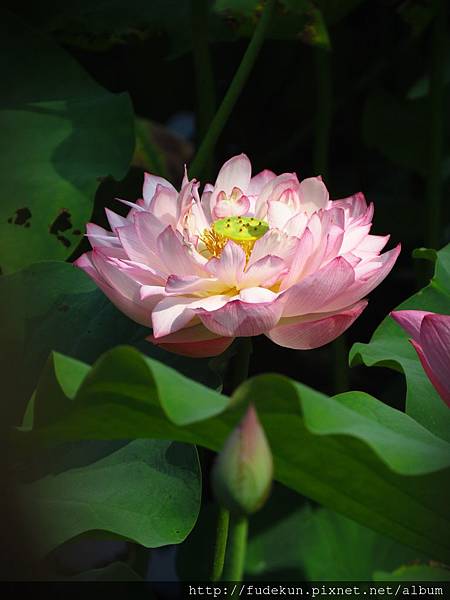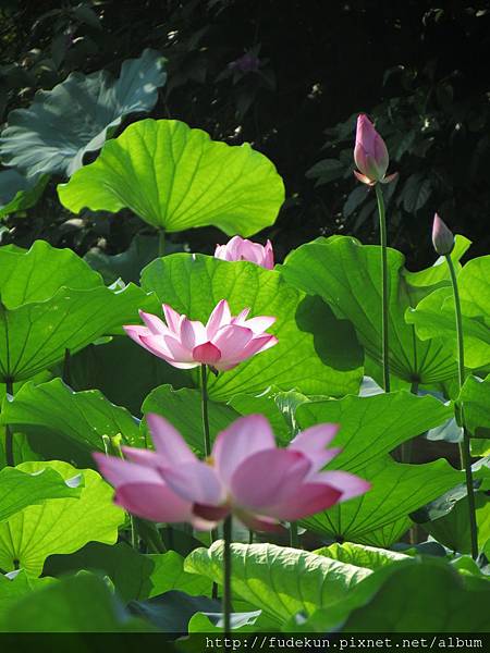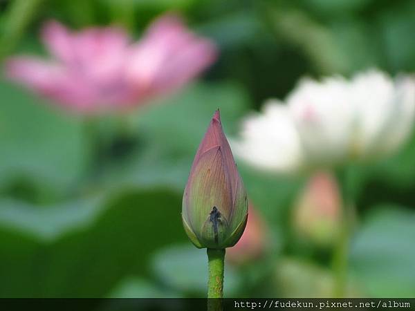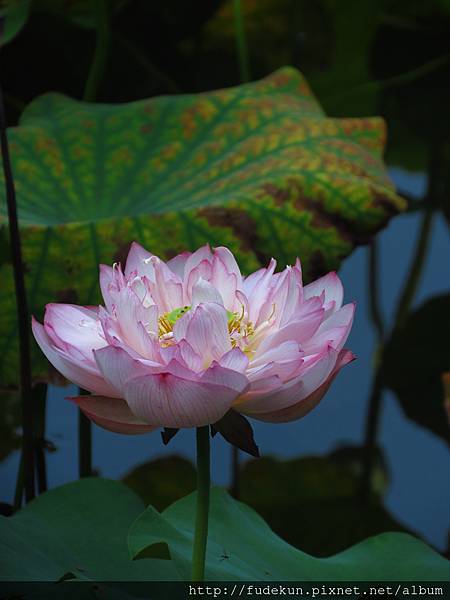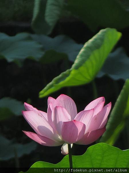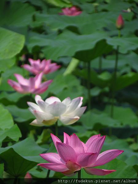 端陽,台北植物園,荷葉田田,孤莖挺花隨風搖曳。