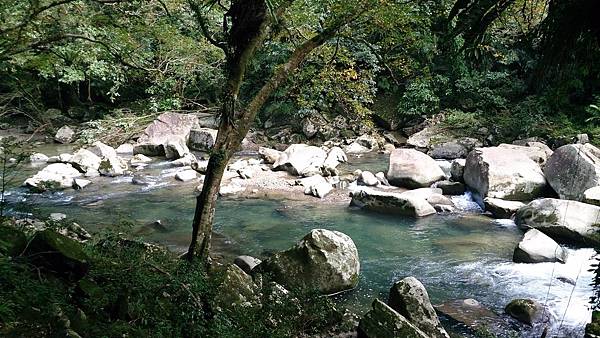 10月的第一個假日,難得家族成員相偕一起到翡翠水庫的源頭,北勢溪上游,新北雙溪區的灣潭古道健行。曾在雙溪住了二十年,當時只知道灣潭很遠很遠,比虎豹潭還要遠;所以年輕時連虎豹潭都沒進去過,遑論灣潭。