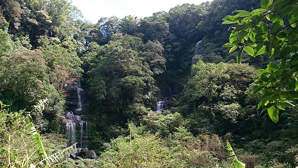 對面山巒群瀑懸掛,銀帶直洩,甚是壯觀!