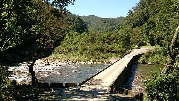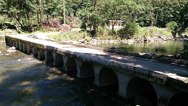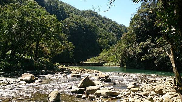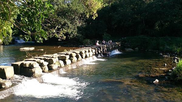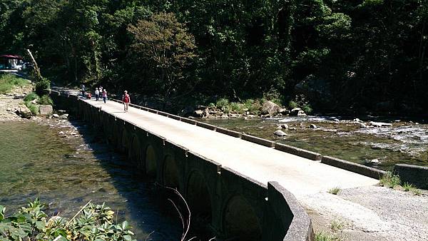 終於抵達此行目的地-三水潭,宛如古橋造型的多孔石橋,如琥珀般的潭水,美景當前,眾人直呼不虛此行。