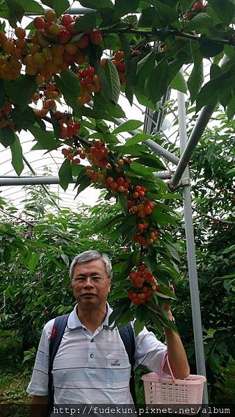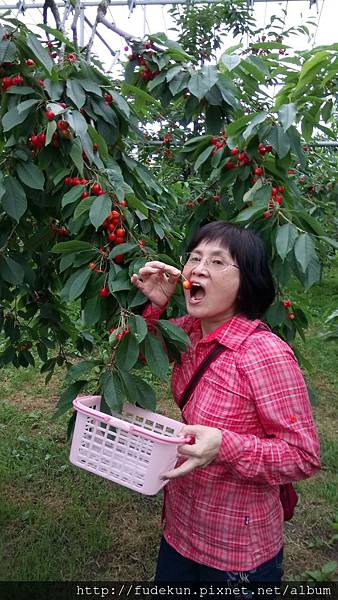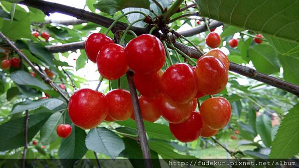 續往第二個景點-山本果園嚐新鮮櫻桃。細雨不斷,還好整片碩大果園架起塑膠屋頂,讓遊客在果園內可以盡性地大嚐新鮮櫻桃而無需擔心被雨打斷興致。