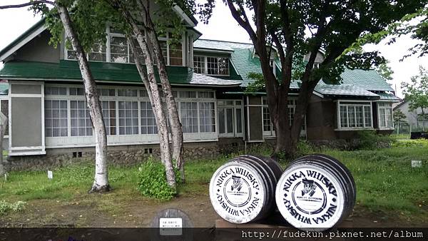 Nikka Whisky酒廠的建築有點仿歐式,主建物採鮮紅色磚塊砌成,廠房則為紅色斜頂及四角椎型通風柱,配上土灰色面牆;部分房舍則採水藍色斜張式屋頂,配上洗石外牆;整個園區環境整潔、樸實、雅致。在大樓二樓試酒區,每人都可品嚐3杯不同口味的Nikka Whisky,未成年的則改提供果汁。